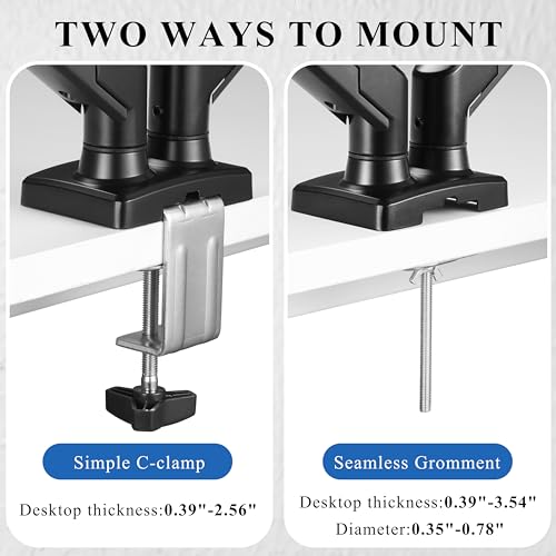 - نوع التركيب: اختر ذراع الشاشة مع مشبك C سهل التركيب إذا كان مكتبك مصنوعًا من مواد قوية؛ هذا الخيار يضمن تركيبًا سلسًا. يوصى باستخدام مسامير الحلقات المعدنية للمكاتب ذات فتحات إدارة الكابلات المثقوبة مسبقًا.