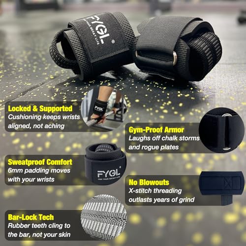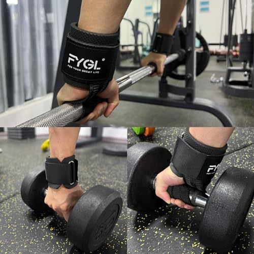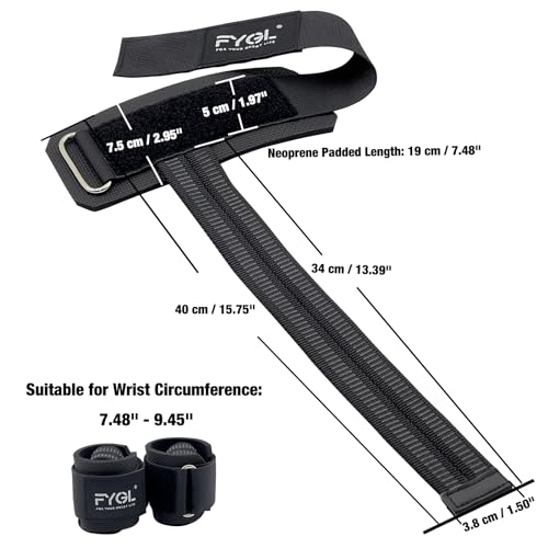 FYGL - أشرطة رفع أثقال من اف واي جي ال، أربطة معصم مبطنة بالنيوبرين مع أحزمة نايلون دورا جريب للجيم لرفع الاثقال ورفع الاثقال وتمارين القوة