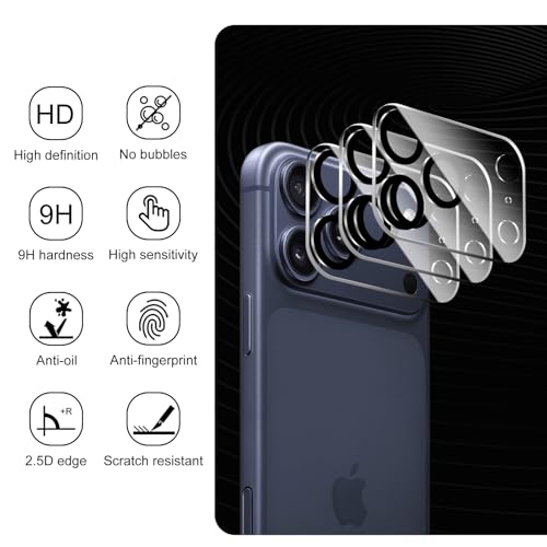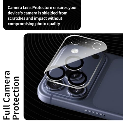 Fylnatc - واقي عدسة الكاميرا لموبايل ايفون 17 برو ماكس من فيلناتك، 3 قطع، غطاء واقي للكاميرا من الزجاج المقوى بدرجة صلابة 9، مضاد للخدش، شفاف HD، لا يؤثر على اللقطات الليلية