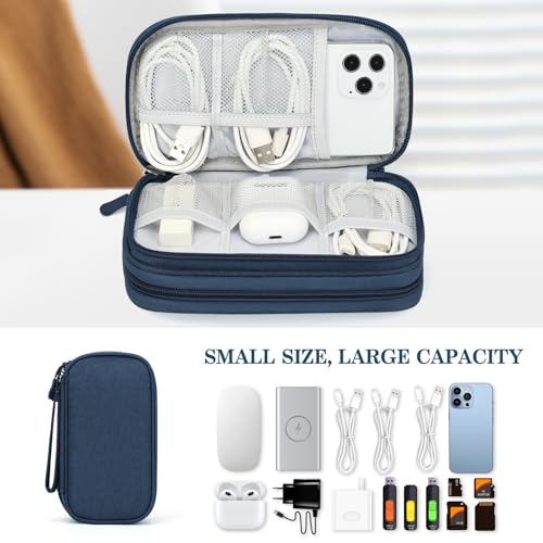 FYY - شنطة تنظيم ملحقات الإلكترونيات من اف واي واي، شنطة تنظيم كابلات السفر، شنطة محمولة مقاومة للماء مزدوجة الطبقات، شنطة سفر الكل في واحد للكابلات والأسلاك والشاحن والموبايل وسماعات الأذن، S- كحلي أزرق
