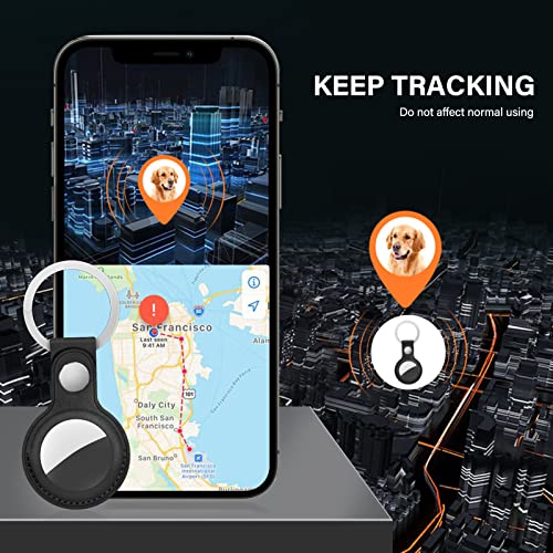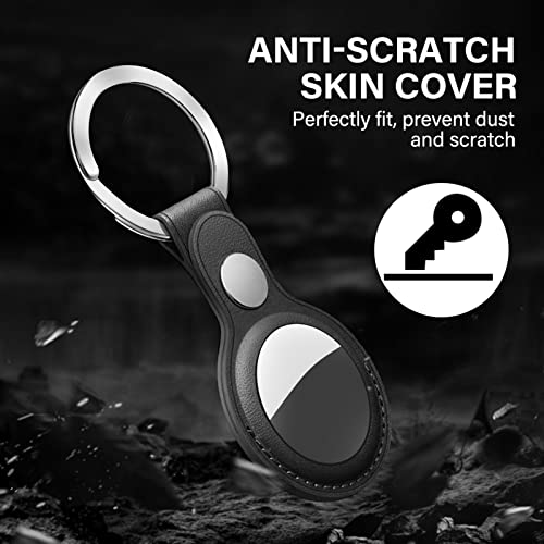 FYY - جراب لحماية جهاز ايرتاج مصنوع من الجلد مع سلسلة مفاتيح بتصميم واقي خفيف الوزن ومضاد للخدش والضياع لجهاز تتبع ايرتاج من اف واي واي، لون أسود