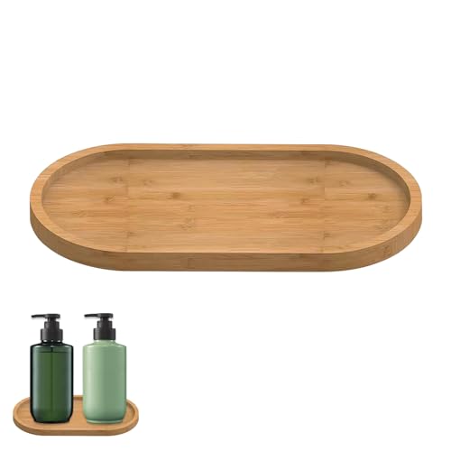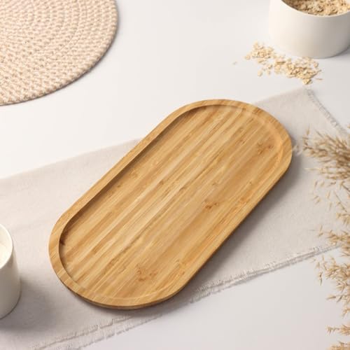 Fzcyuoo - صبانة من الخيزران، صينية بيضاوية لسطح اللمطبخ، صينية تقديم الشاي وخزانة الملابس والمجوهرات والخواتم والشاي والفواكه والوجبات الخفيفة والكيك وديكور المنزل من فزسيو