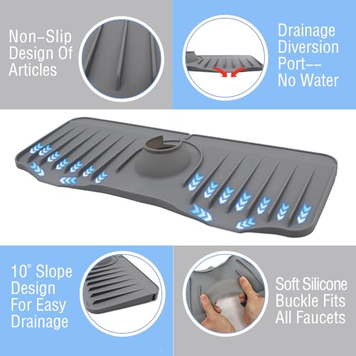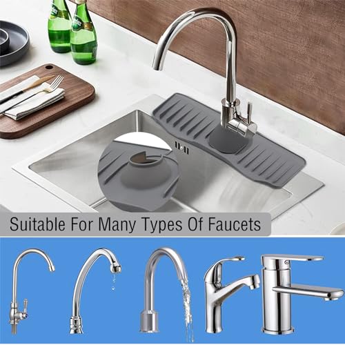 - ★【تصميم جديد】بساط للحنفية مصنوع من السيليكون الآمن غذائيًا من اف زد هوم. بالمقارنة مع القطع القماش التقليدية، صُممت صينية الصنبور المصنوعة من السيليكون لتصريف المياه بسرعة، ولن تتسبب في تراكم المياه. أكثر ملاءمة للاستخدام.