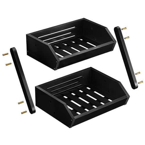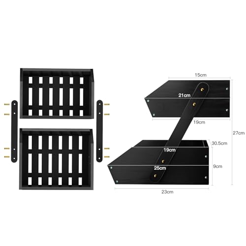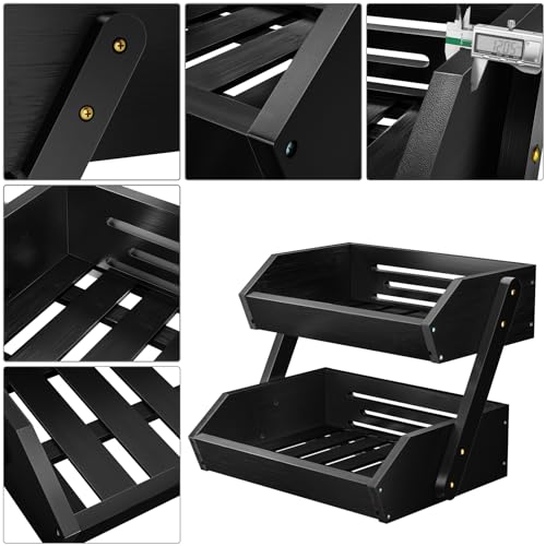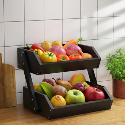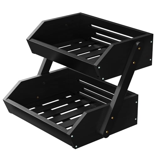 G.a HOMEFAVOR - جي ايه هوميفافر سلة فاكهة من الخيزران بطبقتين للمطبخ حامل تخزين الخضروات قابل للفصل للفواكه والخضروات والخبز والوجبات الخفيفة في المنزل والمطبخ والمكتب اسود