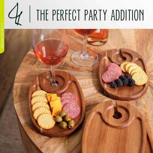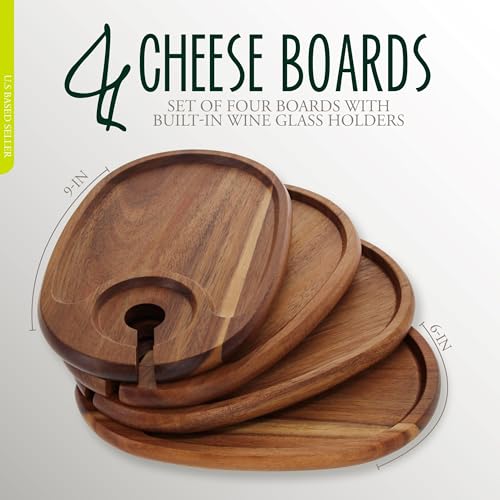 G Francis - طبق تقديم المقبلات من خشب الأكاسيا، ألواح جبن صغيرة من الأكاسيا مع حامل كأس شراب، أطباق كوكتيل خشبية، مجموعة من 4 أطباق من جي فرانسيس