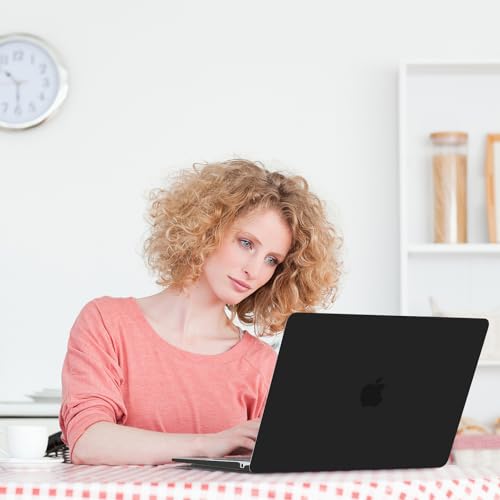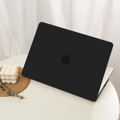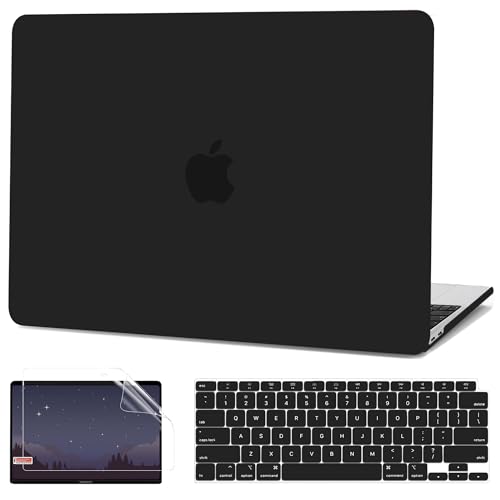 G JGOO - جي جيه او حافظة لجهاز ماك بوك اير 13 انش 2022 2021 2020 2019 2018 اصدار M1 A2337 A2179 A1932 تاتش اي دي لابتوب من البلاستيك غير اللامع + غطاء كيبورد + واقي شاشة اسود فروست بولي كربونات