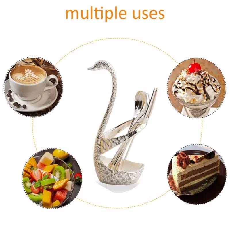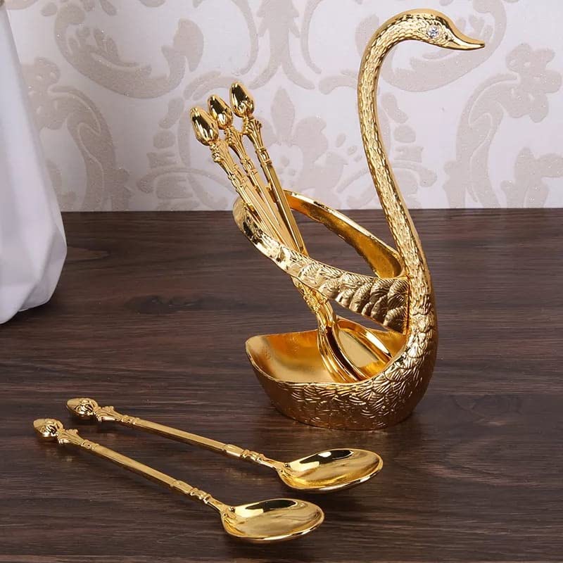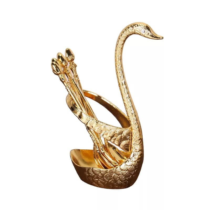 G K EXCLUSIVE - طقم ملاعق على شكل بجعة مع حامل من جي كيه اكسكلوسيف - 6 قطع (ذهبي)