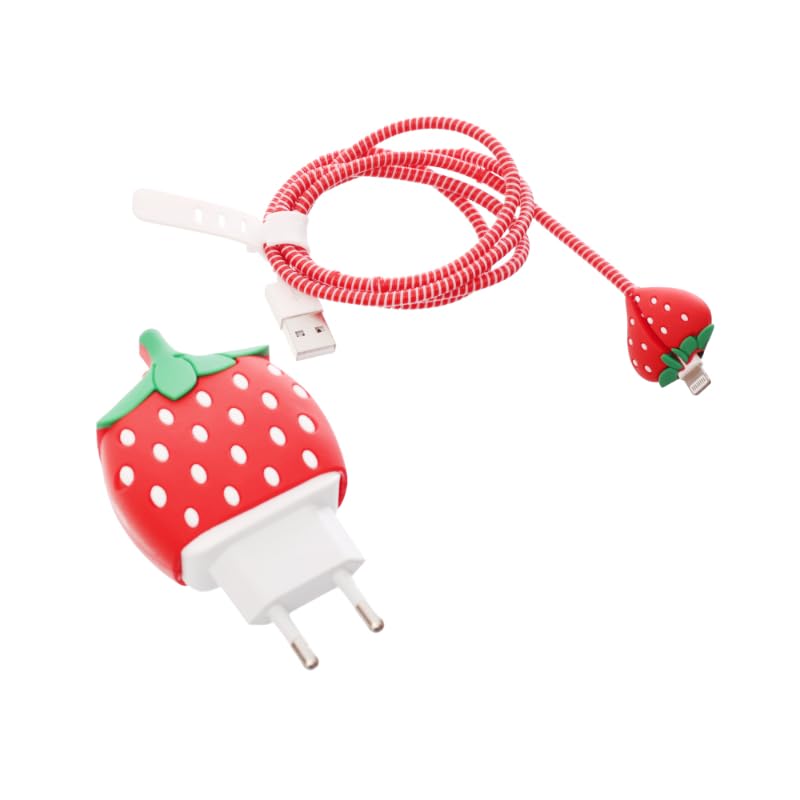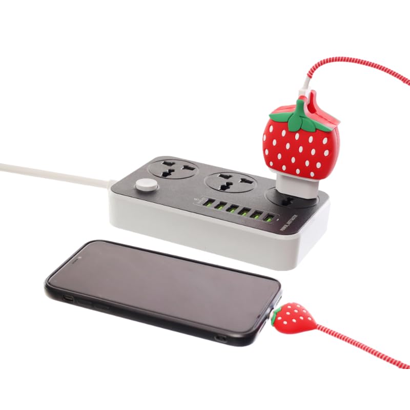G-Power - شاحن من جي-باور متعدد التوصيلات، متوافق مع آيفون وأجهزة أندرويد، مع حماية سيليكون ثلاثية الأبعاد بتصميم فراولة