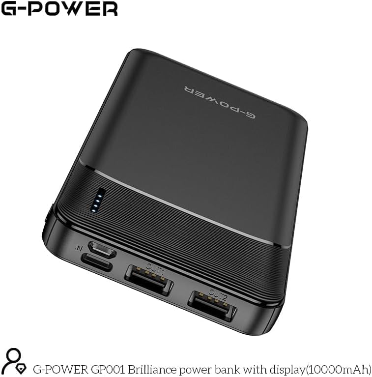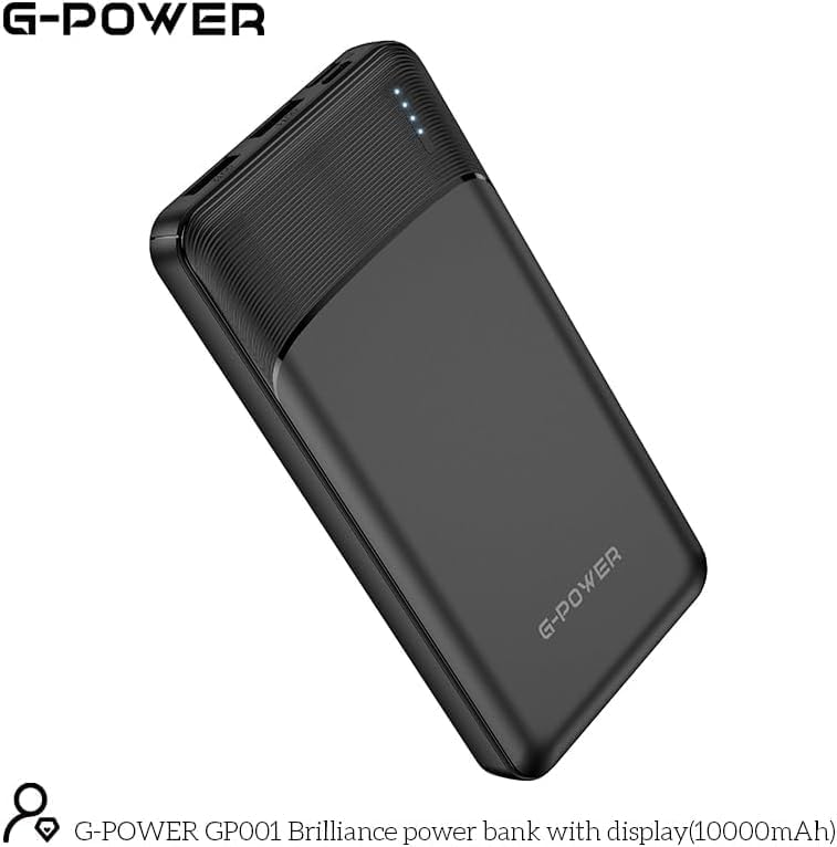G-POWER - باور بانك من جي-باور بسعة 10000 مللي أمبير مع منفذ USB و شحن سريع للهواتف و التابلت و الايربدز باللون الأسود