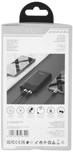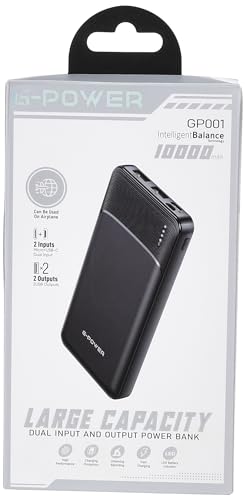 G-POWER - باور بانك من جي-باور سعة 10000 أمبير بتقنية ليثيوم آيون و 3 منافذ USB مع شاشة LED لشحن الهواتف و الأجهزة المحمولة، لون أسود