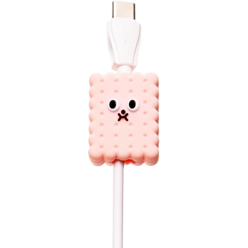 G-Power - واقي كابل سيليكون CB-052 مصمم على شكل بسكويت لطيف لحماية كابل الشاحن من جي باور - وردي