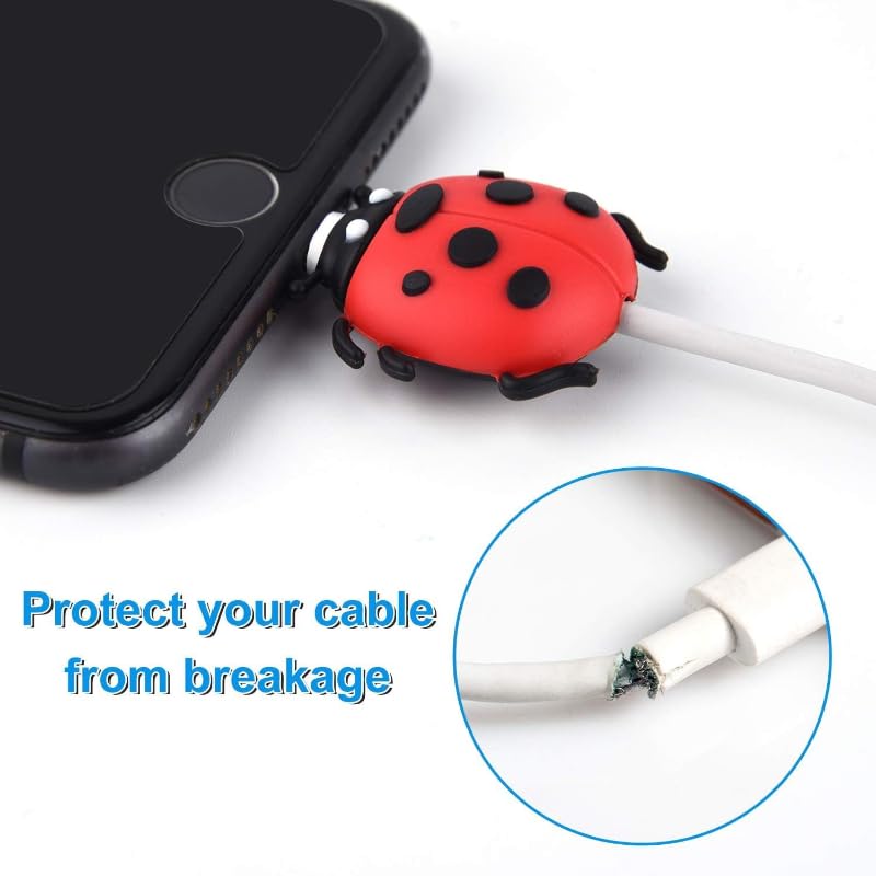 G-Power - واقي كابل سيليكون CB-192 مصمم على شكل خنفساء لطيف لحماية كابل الشاحن - أسود وأحمر من جي باور