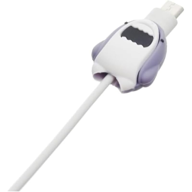 G-Power - واقي كابل سيليكون من جي باور مصمم على شكل سمكة قرش لطيفة لحماية كابل الشاحن، لون رمادي وأبيض