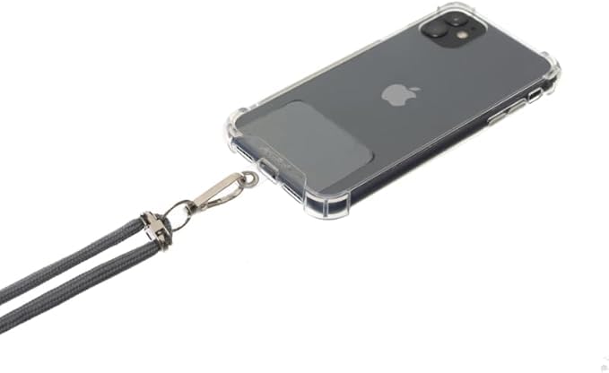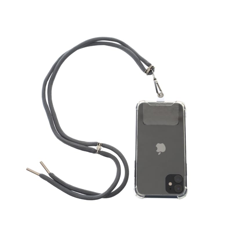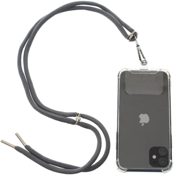 G-Power - حبل قصير للهاتف الخلوي من جي باور مريح وسهل الاستخدام، حامل جوال للرقبة بطول قابل للتعديل مع رقعة شفافة يناسب جميع الموبايلات - رمادي داكن