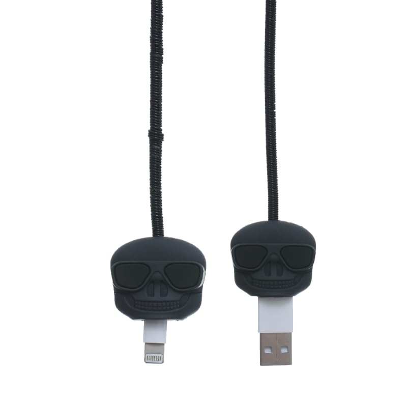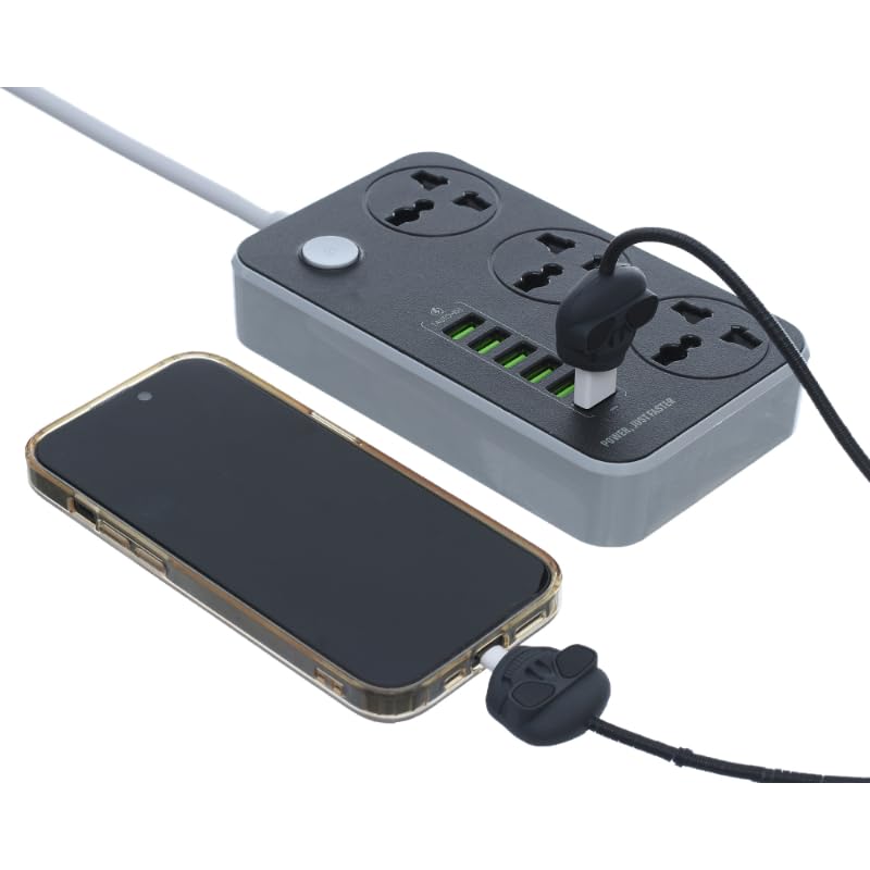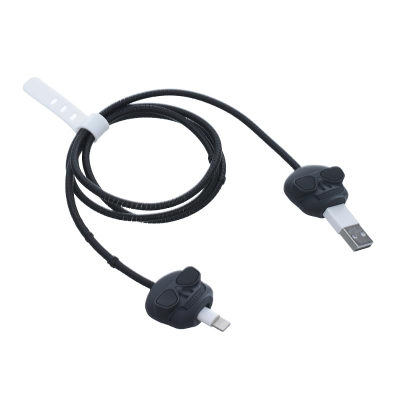 G-Power - واقي كابل شاحن مرن تصميم جمجمة مضاد للتشابك ومناسب لجميع الشواحن، مجموعة من 4 قطع من جي-باور - أسود