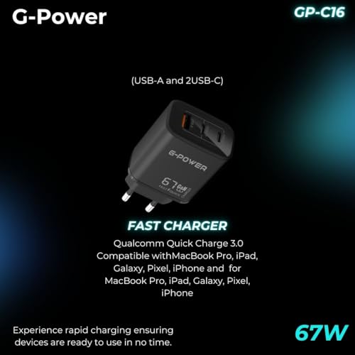 G-POWER - شاحن من جي باور بتقنية USB، متوافق مع ماك بوك برو وآيباد وجالاكسي وبيكسل وآيفون، بثلاثة منافذ