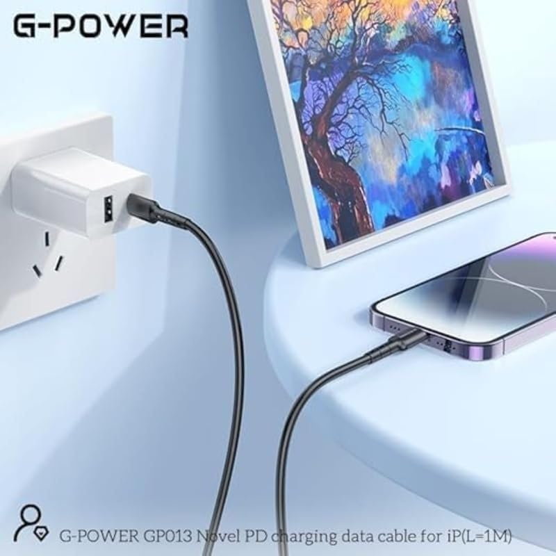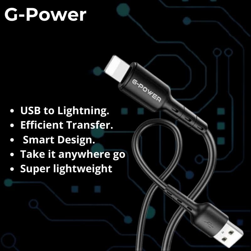 G-POWER - كابل بيانات وشحن USB الى لايتنينج من جي باور GP011 مع نقل فعال وتصميم ذكي لاجهزة متعددة بطول 1 متر ومخرج 2.4 امبير كحد اقصى - اسود