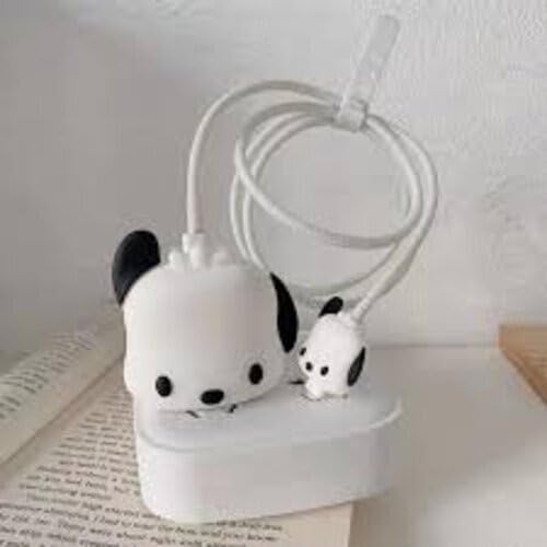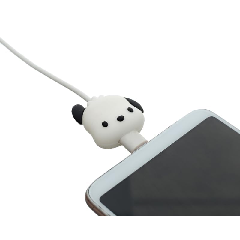 G-Power - واقي شاحن وواقي كابل من جي-باور، من السيليكون الصلب، مصمم على شكل كلب لطيف، لون أبيض وأسود، مجموعة من قطعتين