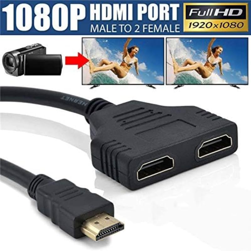 G-Power - محول مقسم HDMI من جي باور كيبل لشاشات مزدوجة مكررة-مراة 1 في 2 خارج ذكر الى مزدوج انثى لـ HD وLED وLCD والتلفزيون يدعم جهازين نفس الوقت أسود