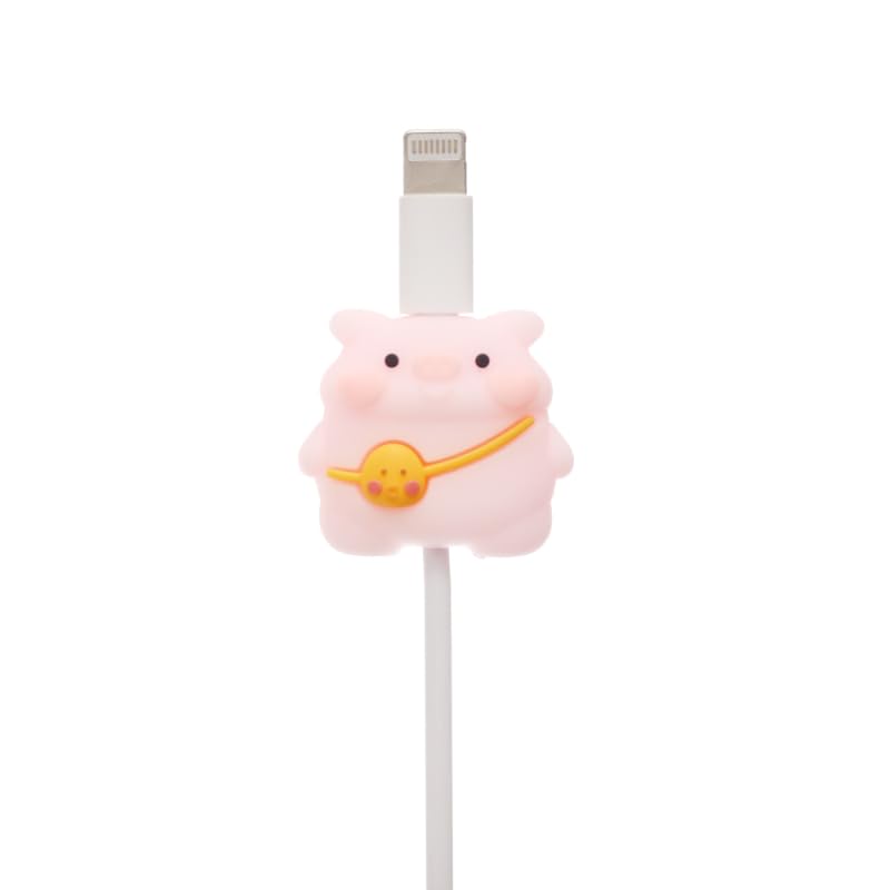 G-POWER - واقي كابل سيليكون من جي-باور، واقي مرن مضاد للتلف، بتصميم خنزير لطيف ثلاثي الأبعاد، مناسب لجميع الشواحن - وردي وأصفر