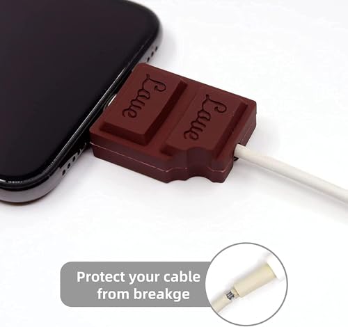 G-POWER - واقي كابل سيليكون من جي-باور مصمم على شكل لوح شوكولاتة لطيفة لحماية كابل الشاحن - بني