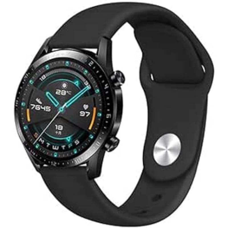 G-Power - سوار ساعة بديل من السيليكون بتصميم أنيق وسهل التركيب لساعة هواوي جي تي 2/22 ملم من جي باور - أسود