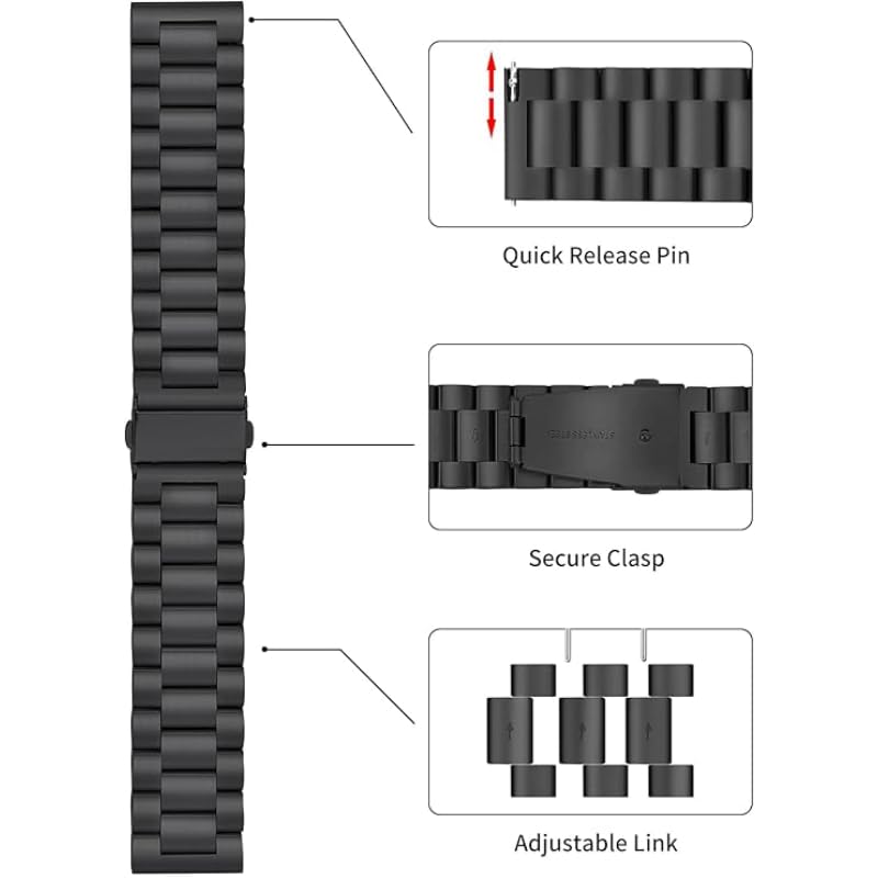 G-Power - سوار معصم بديل من جي - باور ، من الفولاذ المقاوم للصدأ بمرونة عالية خصيصًا لساعة هواوي وسامسونج اكتيف 2 وهواوي مقاس 42 ملم - أسود للبالغين من الجنسين