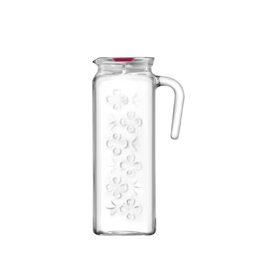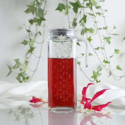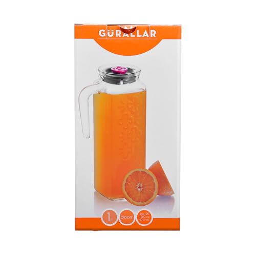 Gürallar - إبريق زجاجي مربع الشكل من جورالار ارت كرافت بلوم بغطاء / 1200 سم مكعب / للعصائر والكوكتيلات وغيرها