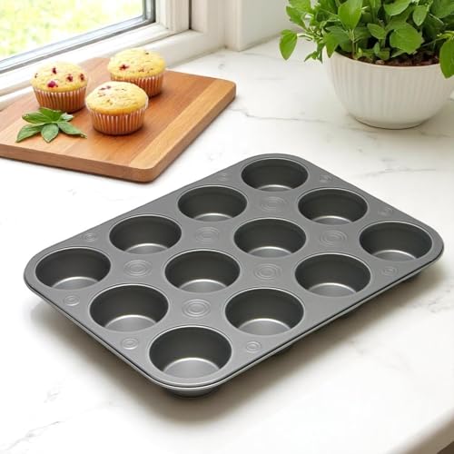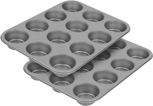 BAKER-EZE - صينية مافن غير لاصقة بيكر ايز من جي اند اس ميتال برودكتس كومباني، 12 كوب، مجموعة من 2 قطعة