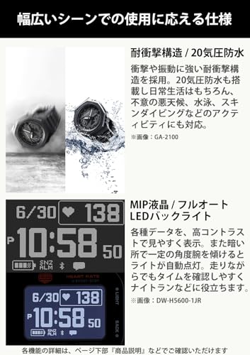 - هذا لون إضافي لسلسلة DW-H5600 مفيد في الحياة اليومية في خط جي شوك الرياضي "جي-سكواد". مزود بمستشعر بصري يمكنه قياس معدل ضربات القلب ومستشعر تسارع يمكنه قياس الخطوات لمساعدتك على التمرين.