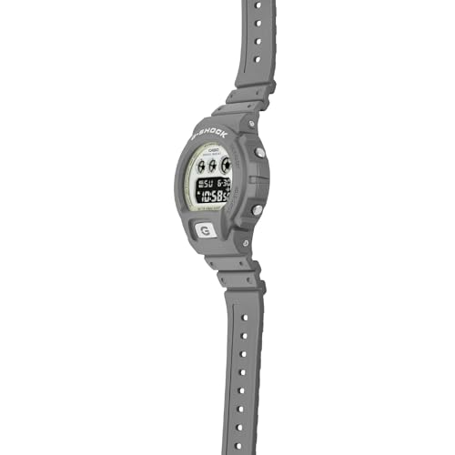 G-Shock - ساعة جي-شوك من كاسيو DW6900HD-8DR 6900 سلسلة 6900 رقمية مضيئة متوهجة بسوار راتنج للرجال - بلون رمادي/أبيض