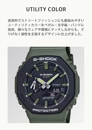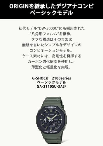 G-Shock - ساعة جي شوك محلية يابانية (GA-2110SU-3AJF) من كاسيو، انالوج، بمينا أسود، بسوار أخضر، للرجال