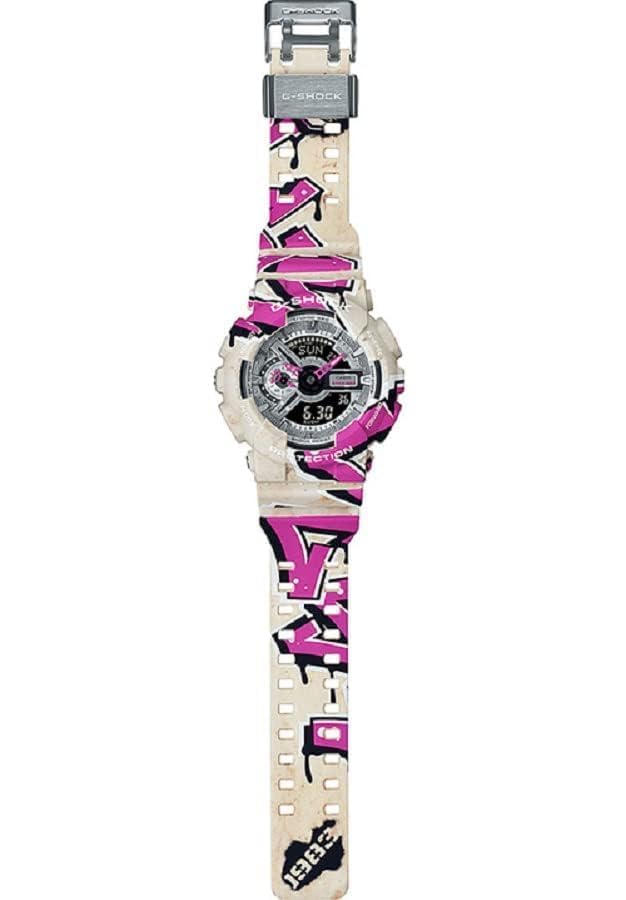 Casio - ساعة جي-شوك جرافيتي ارت ستريت سبيريت رقمية انالوج بمينا سوداء وسوار من الراتنج للرجال من كاسيو GA-110SS-1ADR