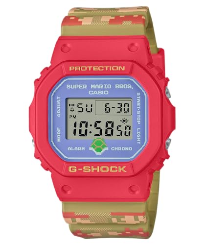 Casio - ساعة جي-شوك رقمية إصدار سوبر ماريو ومينا شفاف وسوار من الراتنج للجنسين من كاسيو، متعددة الألوان، DW-5600SMB-4DR