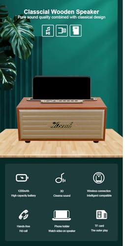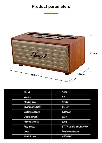 Generic - مكبر صوت G12A الموسيقية الخشبية - صوت ستيريو 360 درجة-يدعم بطاقة TF، منفذ AUX، وUSB - مضخم صوت عميق - قدرة 5 واط - بطارية تدوم حتى 5 ساعات (احمر)
