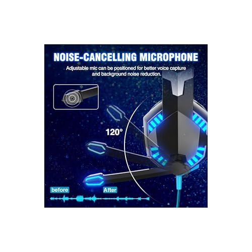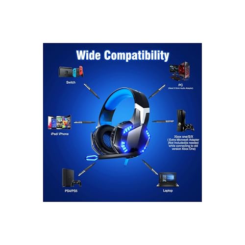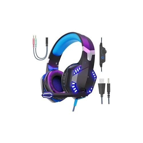 Generic - سماعة راس للالعاب G2000 - باس محيطي، ميكروفون بخاصية الغاء الضوضاء، سماعات LED فوق الاذن لاجهزة بلاي ستيشن 5 واكس بوكس والكمبيوتر وغيرها