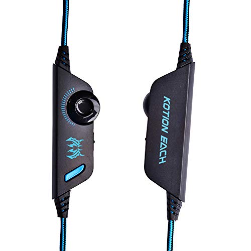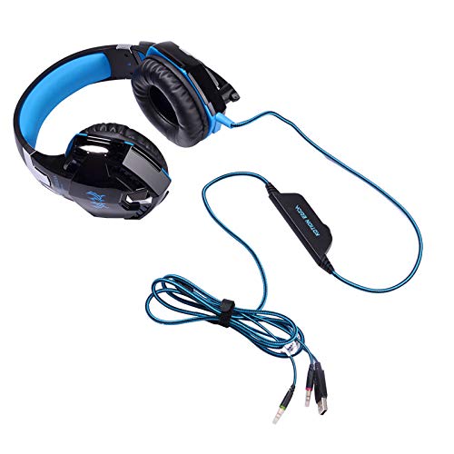 G2 - سماعة رأس ستيريو للالعاب بطوق للراس مع ميكروفون وايقاع باس واضاءة ليد للكمبيوتر موديل G2000 من كوشن ايتش، سلكي، فوق الاذن، أسود
