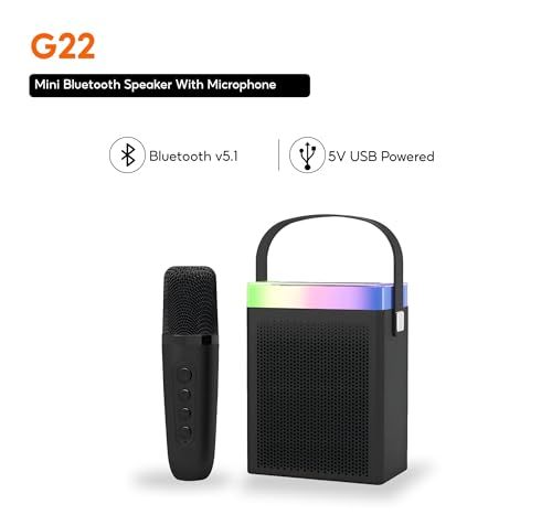 Generic - سماعة بلوتوث محمولة G22 مع ميكروفون – صوت HiFi –– إضاءة RGB – قدرة 5 وات – بطارية 1200mAh – لون أسود
