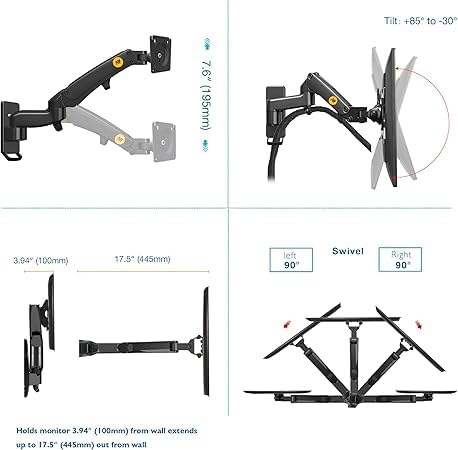 - بناء متين: مصنوع من مواد عالية الجودة تضمن الثبات والمتانة لحمل شاشتين في وقت واحد بأمان تام