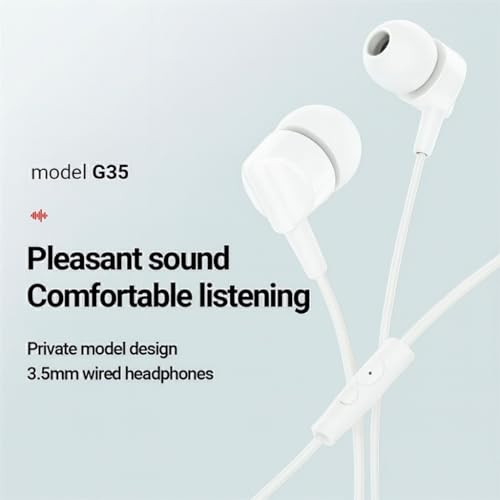 Generic - سماعات سلكية G35 بجودة صوت HiFi وميكروفون مدمج - صوت عالي الدقة وباس قوي مع كابل TPE 1.2 متر- لون ابيض
