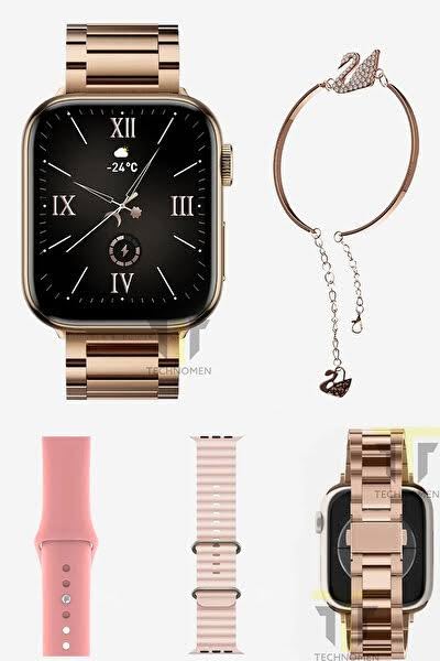 Generic - ساعة ذكية G9 صغيرة بثلاث مجموعات من الأساور للنساء، إصدار باللون الذهبي والوردي، زهري