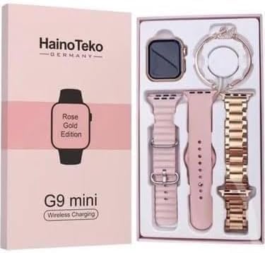 Generic - ساعة ذكية جي 9 ميني اصدار ذهبي وردي للنساء مع ثلاث مجموعات من الاساور وسوار انيق