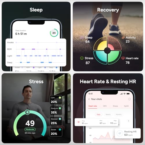 - حلقة الصحة الكاملة الخاصة بك- تتبع صحتك ولياقتك وخطواتك والنوم والتوتر والتمارين الرياضية وتشبع الأكسجين في الدم ودرجة الحرارة والأنشطة والتغذية في تطبيق Gabit بدون رسوم اشتراك إضافية. تحليل دقيق لأهم مؤشرات جسمك - يشمل الحد الأقصى لاستهلاك الأكسجين، ومعدل نبضات القلب أثناء الراحة، وتقلّب معدل ضربات القلب، ومعدل النبض، ومستوى التوتر، ودرجة حرارة الجلد، ومستوى الأكسجين في الدم.