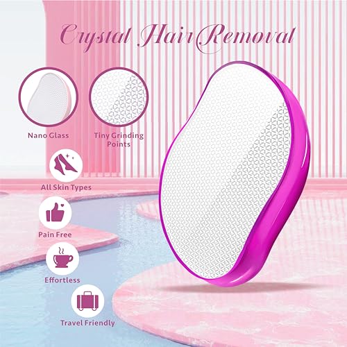 GABOX - أداة إزالة الشعر الكريستالية للنساء، أدوات إزالة شعر من زجاج النانو للنساء والرجال، أرجواني