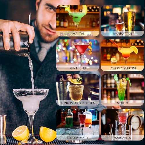 - 【رائعة للمنزل أو العمل】مجموعة شيكر الكوكتيل، مجموعة مثالية للمنزل والبار، بحيث يمكنك تحضير مشروبات مصنوعة من مجموعة متنوعة من المشروبات مع خلاط الكوكتيل الاحترافي، مثل: السكوتش، مارغريتا موهيتو، كلاسيك مارتيني، مانهاتن، ماي تاي، مينت جولاب، لونغ آيلاند آيس تي، بلودي ماري، تيكيلا، جين، وأكثر من ذلك.