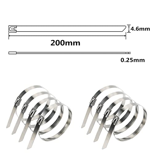 - ★المقاس: رباط الكابل من فولاذ مقاوم للصدأ 304 مقاس 4.6 ملم × 20 سم، الطول: 20 سم، العرض: 4.6 ملم، السُمك: 0.25 ملم. يمكن ربط هذه الأربطة من الفولاذ المقاوم للصدأ للاستخدام، يرجى التأكد من أن هذا المقاس يلبي احتياجك.
