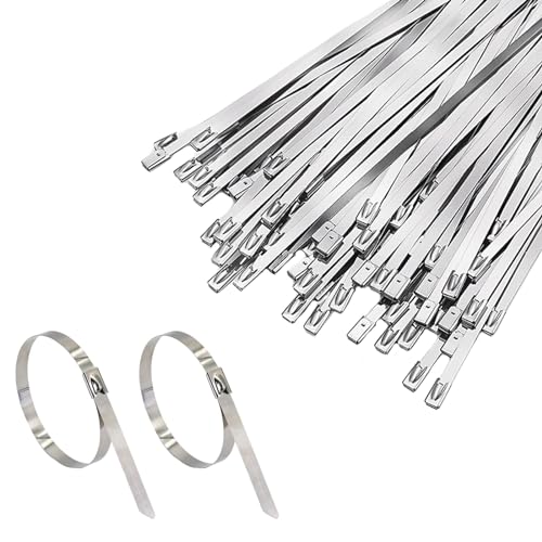 Gad2go - رباط كابل من فولاذ مقاوم للصدأ ذاتي الغلق، رباط معدني للاستخدام في المنزل والمكتب والحديقة من جاد2جو، 4.6 × 20 سم، فضي، 50 قطعة