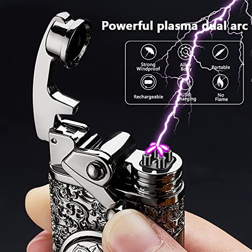 GADATOP - ولاعة كهربائية مقاومة للرياح من جاداتوب، ولاعة بلازما مزدوجة قابلة لإعادة الشحن بمنفذ USB مع علبة هدايا (أسود)