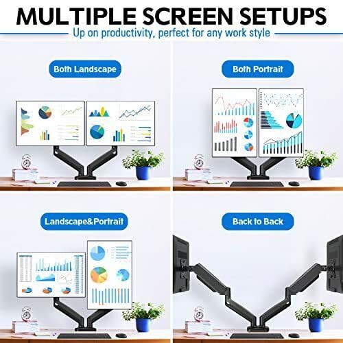 - ① حامل شاشة يعمل على زيادة الراحة والإنتاجية: يناسب شاشات ال سي دي وليد والتلفزيونات المسطحة أو الشاشات من 17 إلى 32 بوصة، بوزن تحميل يصل إلى 8 كجم لكل ذراع، ومتوافق مع معيار VESA بمقاسي 75×75 ملم و100×100 ملم.