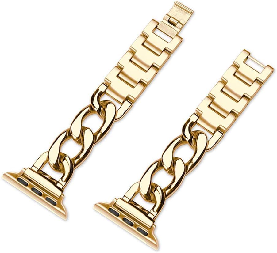 GadgetCom - سوار بديل بتصميم سلسلة من الفولاذ المقاوم للصدأ مع حلقات معدنية متوافق مع ساعة آبل 41 ملم / 40 ملم / 38 ملم، ساعة آبل سلسلة 8 7 6 5 4 3 اس اي من جادجيت كوم